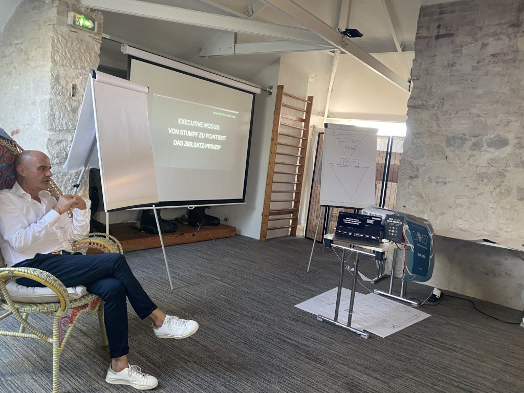 Wie trainiert man das Zielsatz Prinzip und das Finden in den Executive Modus, one-on-one und in Boards und Gruppen? Und wie entsteht das fragile Verhältnis aus Authentizität und Rolle bei Spitzenmanagern und Politikern? Die drei proprietären Methoden von Stefan Wachtel werden vermittelt. Die Didaktik, die Feedback-Methoden, die Ergebnissicherung an typischen Situationen von Spitzenmanagern, Pressekonferenzen, TV-Interviews, Town Halls, interne und externe Speeches, all das wird in diesem Train-the-Trainer-Briefing am eigenen Leib erprobt.